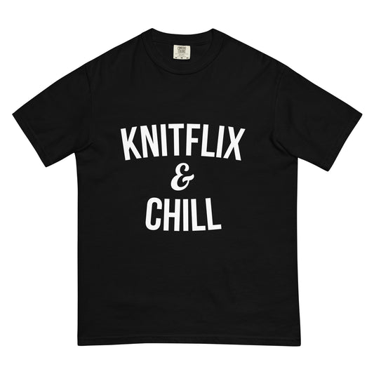 Cotton T-shirt - "Knitflix and Chill" Knitting White Letters