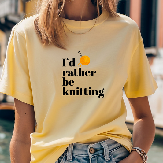 I'd Rather Be Knitting T-Shirt – Unisex Garment-Dyed Tee for Knitters Yarn Lovers & Crafters