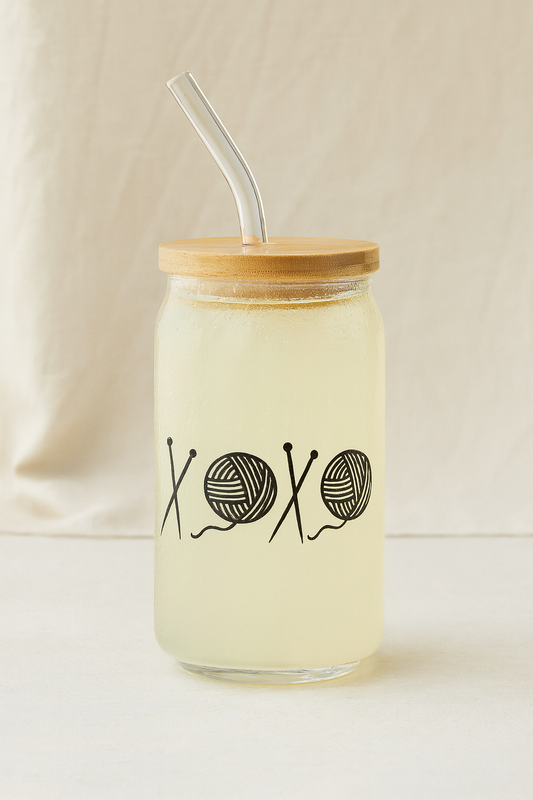 XOXO Glass Can with Straw – Tumbler for Knitters