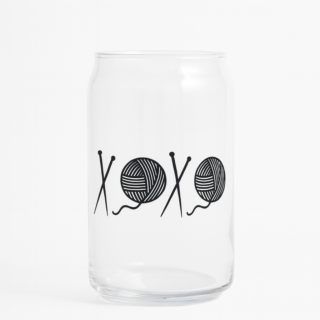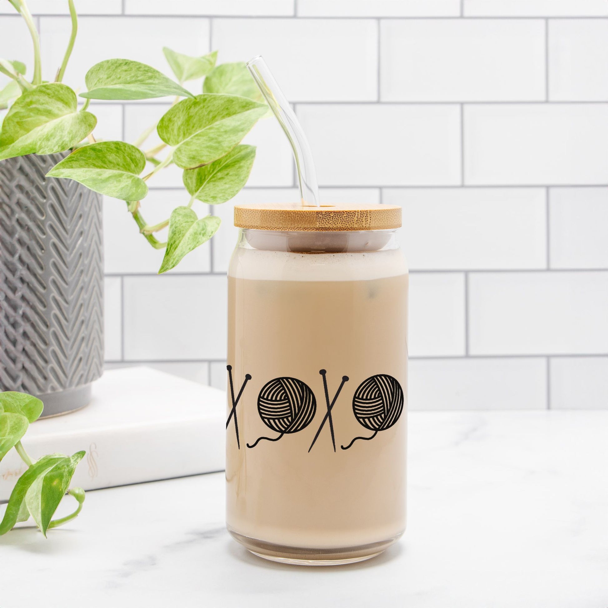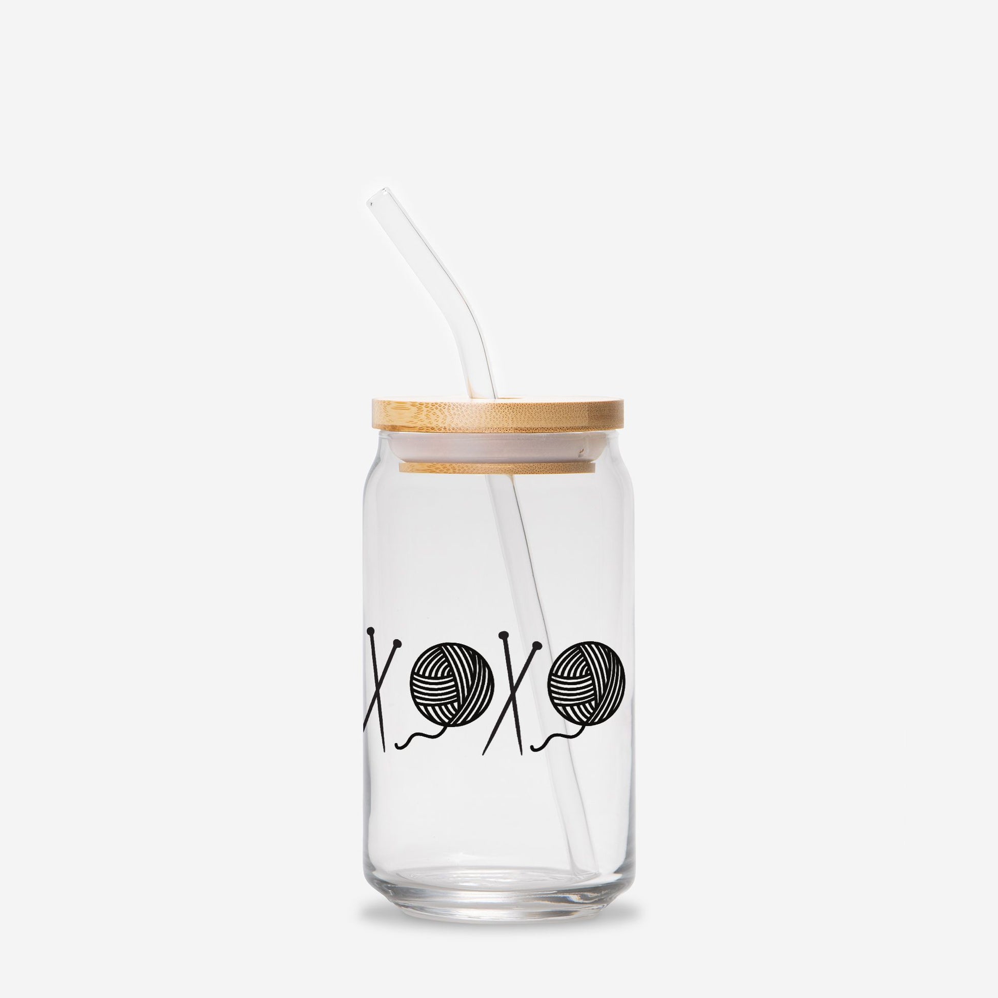 XOXO Glass Can with Straw – Tumbler for Knitters